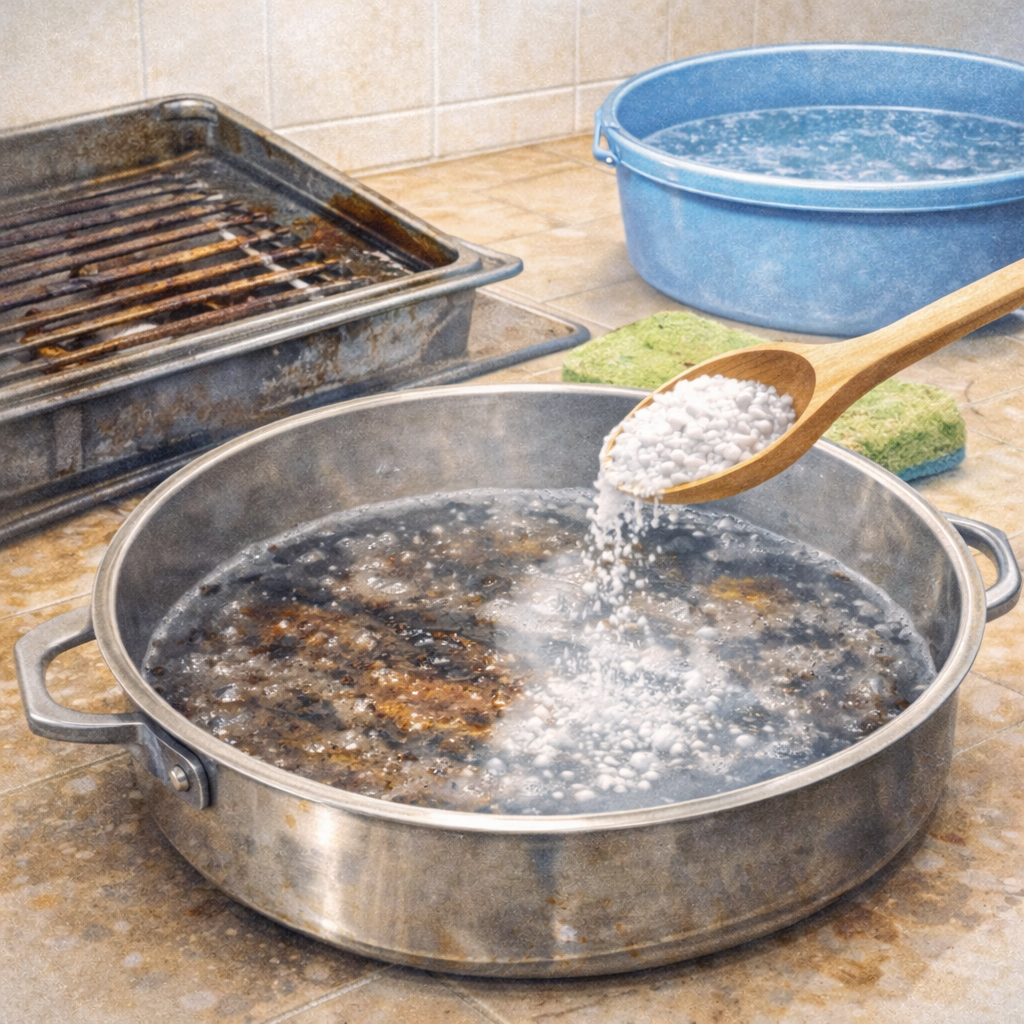 👉 Besonders effektiv für stark verschmutzte Pfannen, Backbleche und Fettfilter.