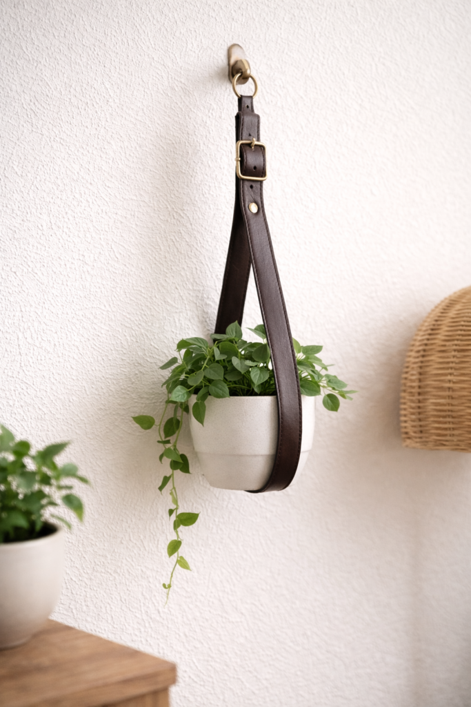 Pflanzen liegen voll im Trend, und mit alten Gürteln kannst du ihnen eine stilvolle Bühne geben.