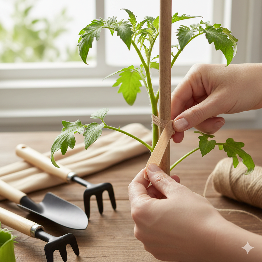 Im Garten ist Nylon unschlagbar. Da das Material dehnbar ist, schneidet es nicht in die Stängel von Tomaten oder jungen Bäumen ein, wenn diese wachsen. Es ist die sanfteste Methode, um Pflanzen sicher an Stäben zu fixieren.