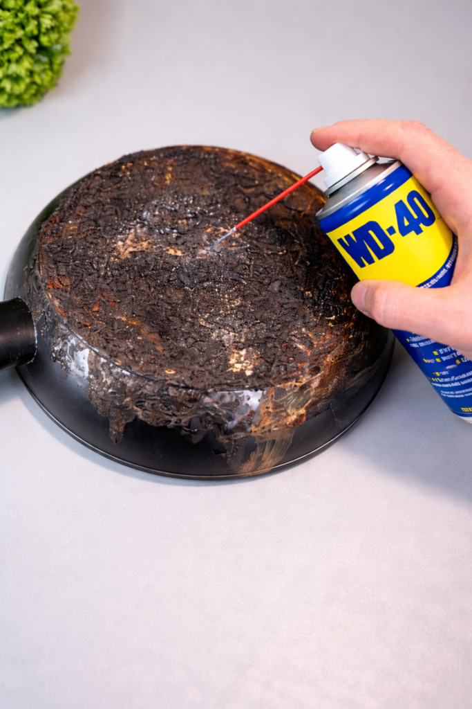 ⚠️ Wichtig: WD-40 ist ein technisches Hilfsmittel und darf niemals im Inneren der Pfanne verwendet werden.