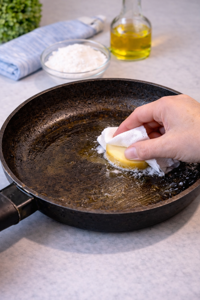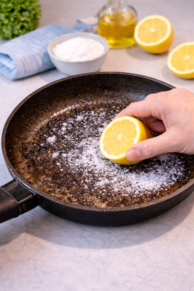 🍋 1. Zitrone & Salz – der Klassiker gegen eingebrannte Rückstände