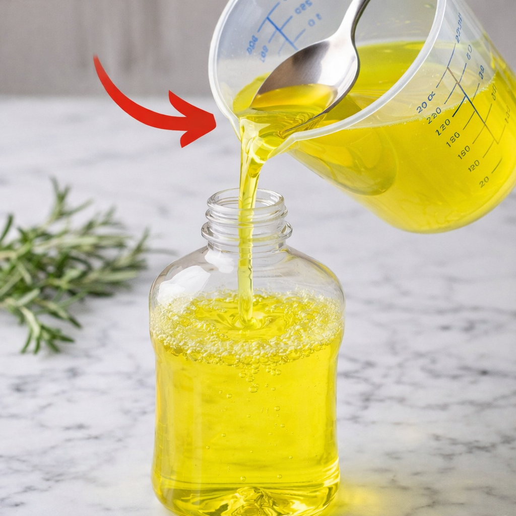 4. Abfüllen: Nutze einen Trichter, um die Mischung in eine saubere Plastikflasche zu füllen. Fertig ist dein verbessertes Power-Gel! ✅