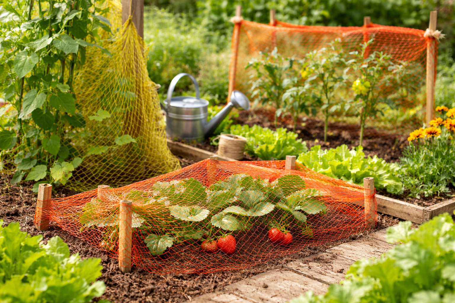Nutze die Netze als leichte Pflanzenstütze oder schütze kleine Setzlinge vor Vögeln und größeren Schädlingen, indem du das Netz locker darüber spannst. So profitieren deine Pflanzen von Luft und Licht, während Schädlinge abgehalten werden.
