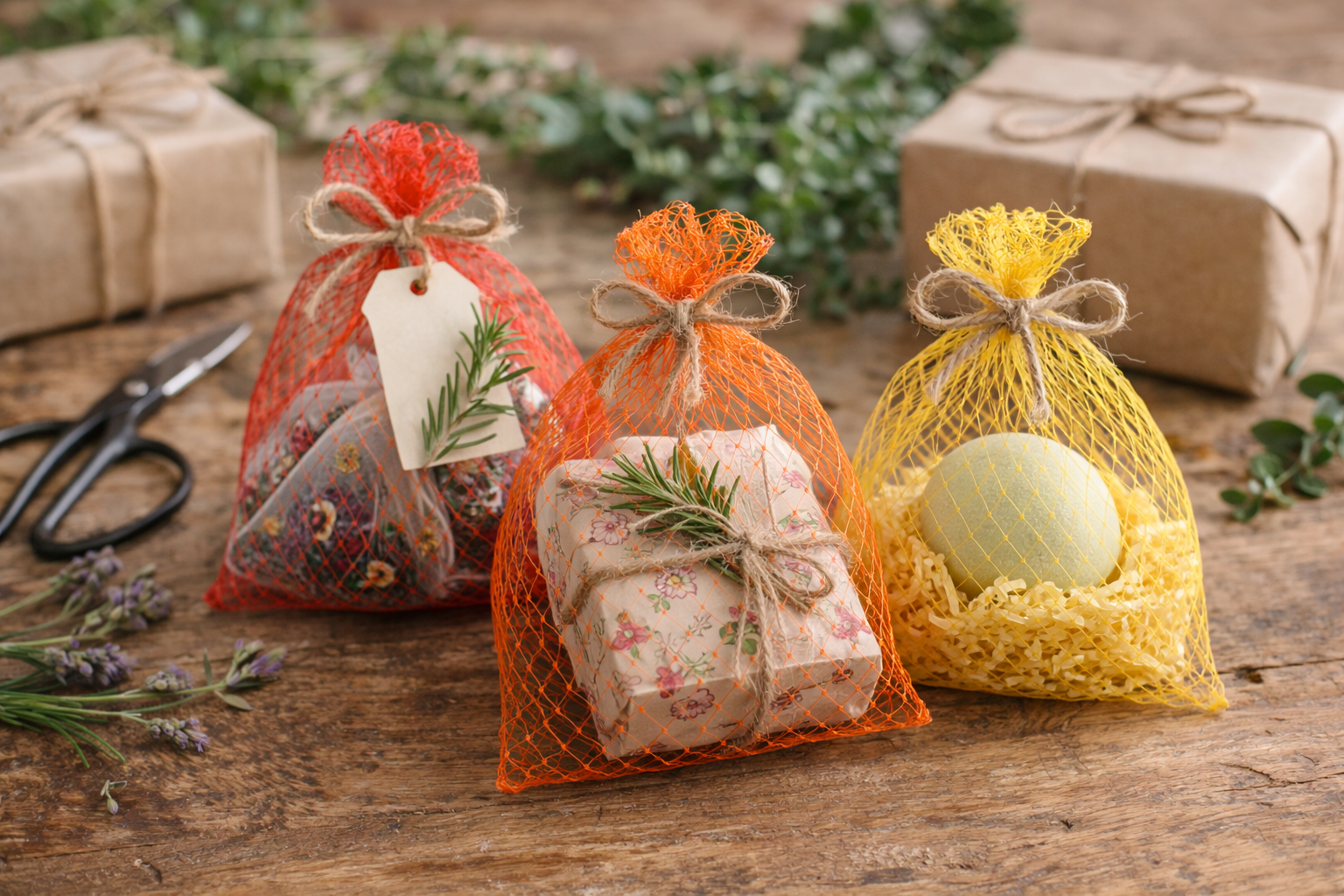 Verwende kleine Netzbeutel als umweltfreundliche Geschenkverpackung für Seifen, Tee oder kleine Präsente – wiederverwendbar und originell.