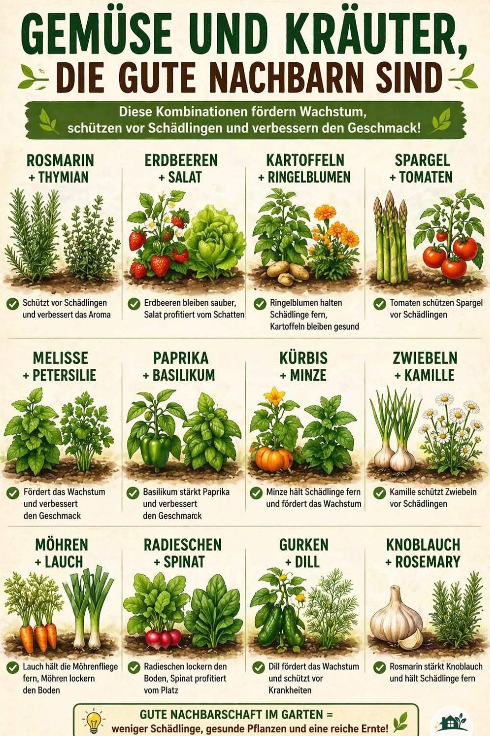 - 🥕 Karotten + Zwiebeln → natürlicher Schutz vor Schädlingen