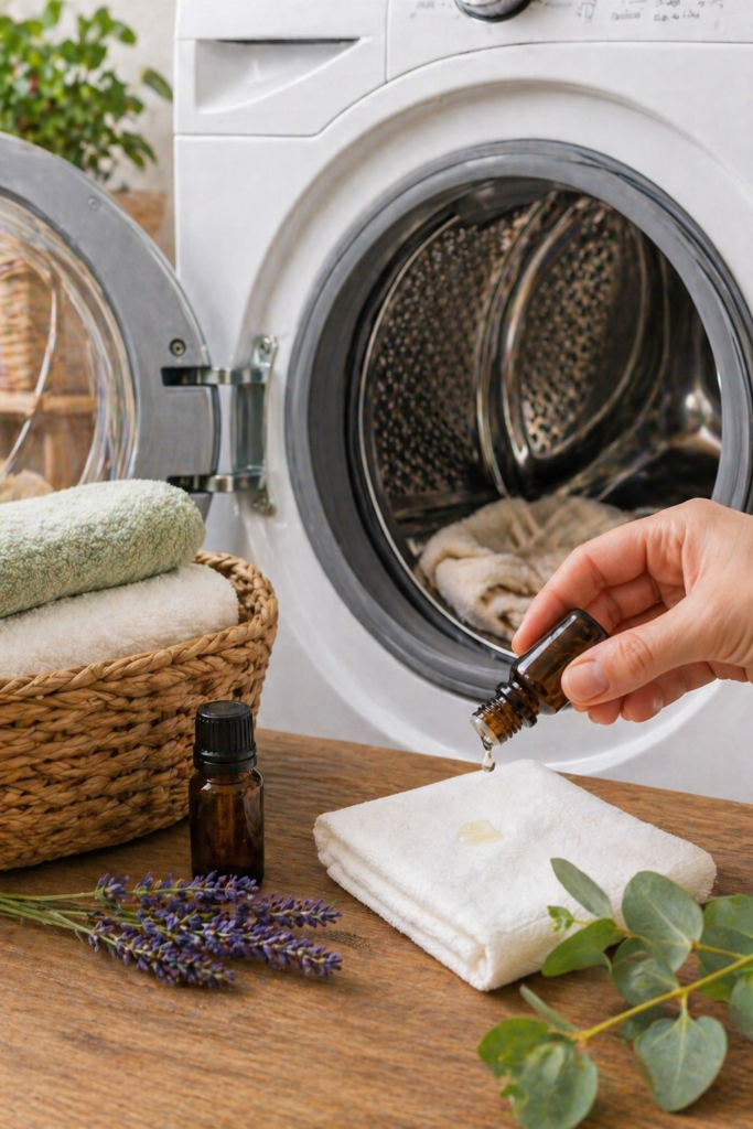 2–3 Tropfen auf ein Tuch geben → mit in die Trommel legen