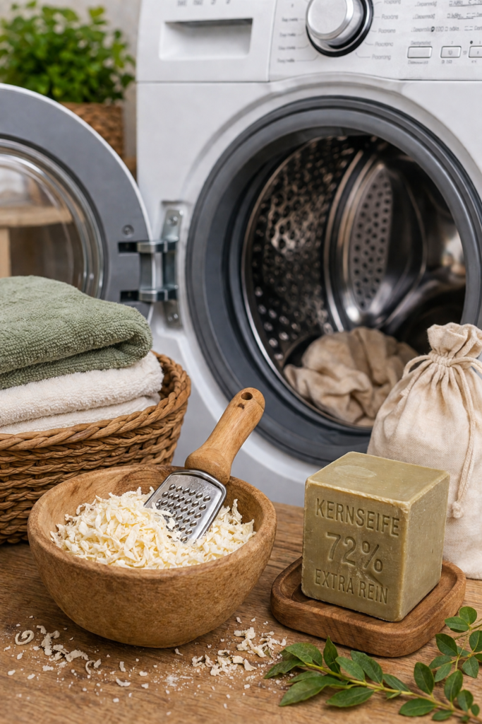 fein reiben und kleine Menge zur Wäsche geben