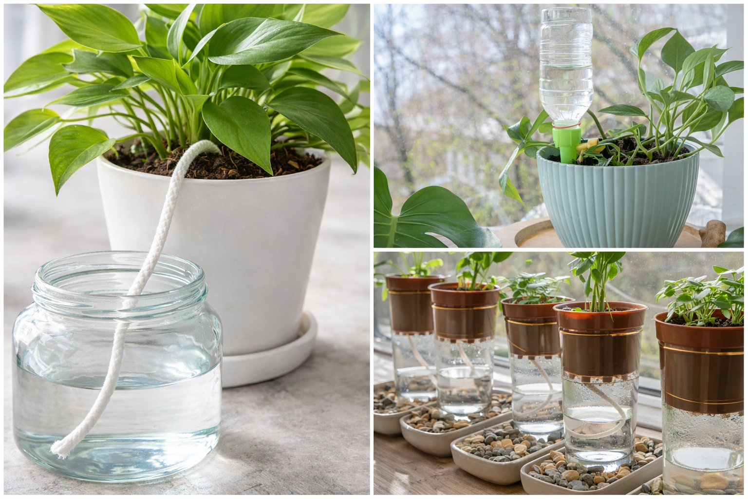 F: Verursachen diese Methoden Wurzelfäule? A: Bei der Docht-Methode und der Flaschen-Methode ist das Risiko gering, da die Erde nur feucht, nicht klatschnass wird. Achte beim Kieselstein-Tablett darauf, dass der Topf nicht im Wasser steht.