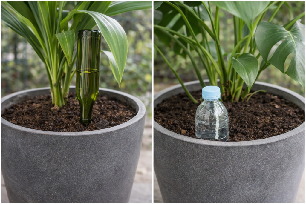4️⃣ Die Weinflaschen-Bewässerung 🍷