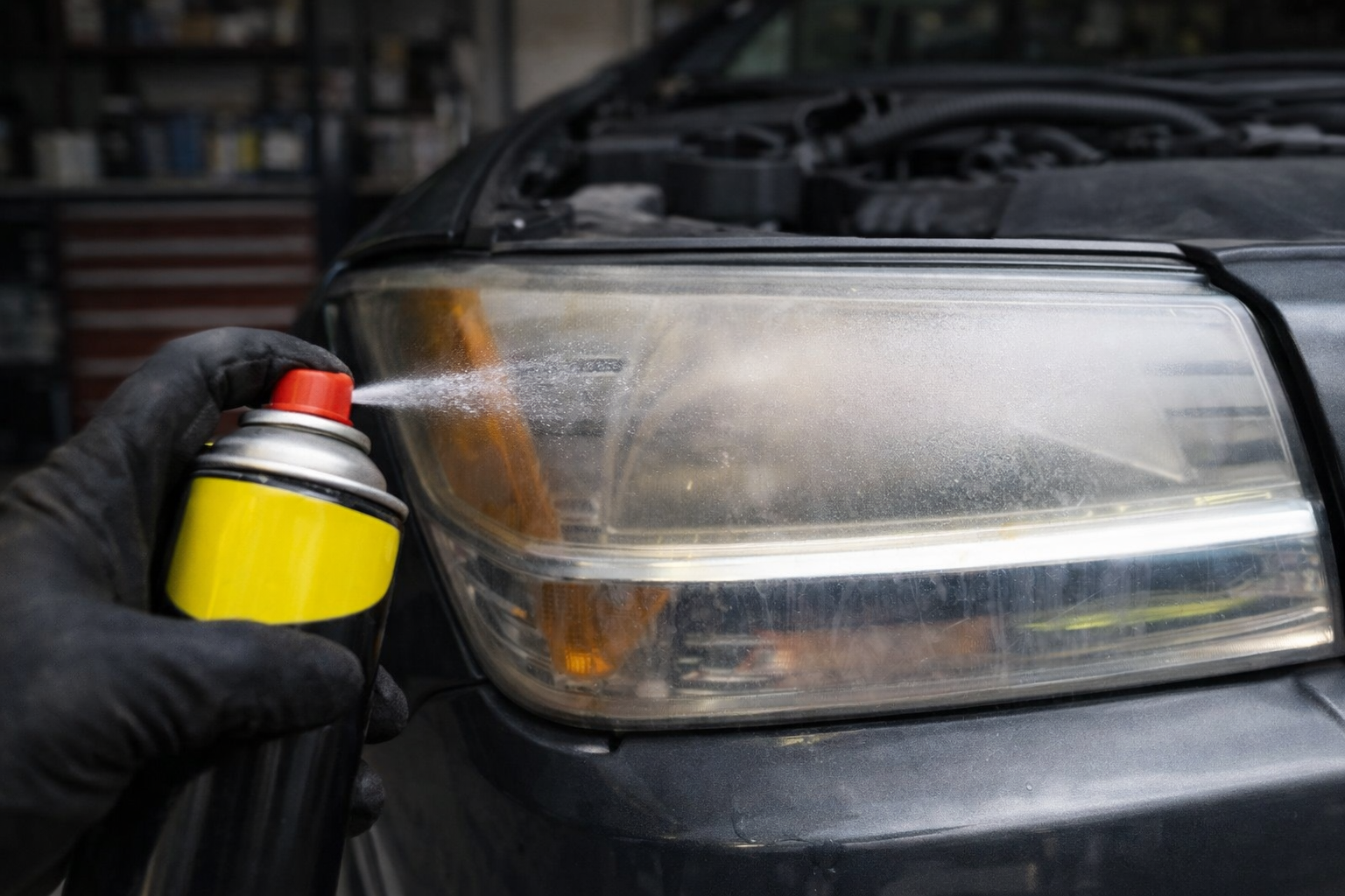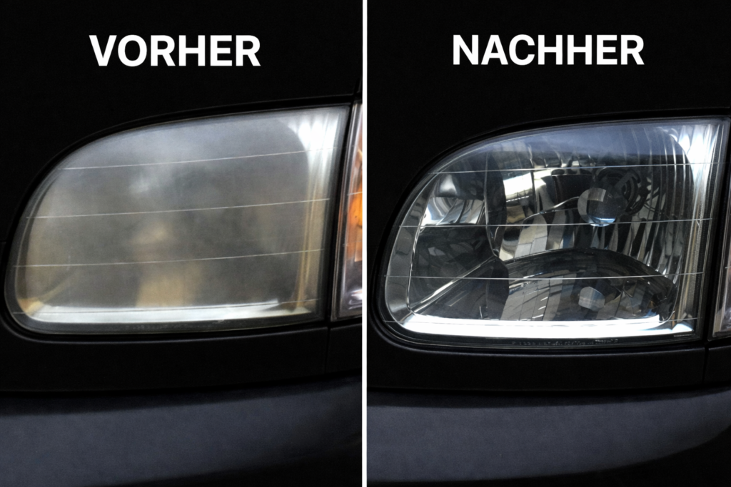 Glasreiniger entfernt effektiv Schmutz und Ablagerungen auf den Scheinwerferlinsen, ohne die Oberfläche zu beschädigen.