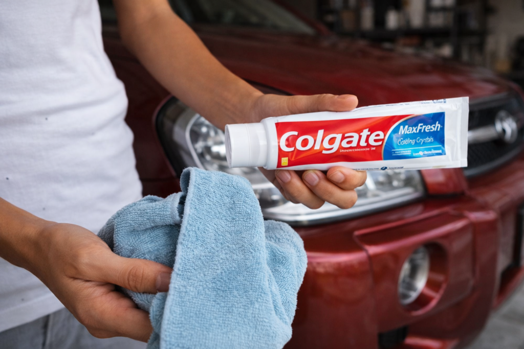 Ja, Zahnpasta kann ebenfalls zur Reinigung von Autoscheinwerfern verwendet werden. Wichtig ist, keine Gel-Zahnpasta zu verwenden.