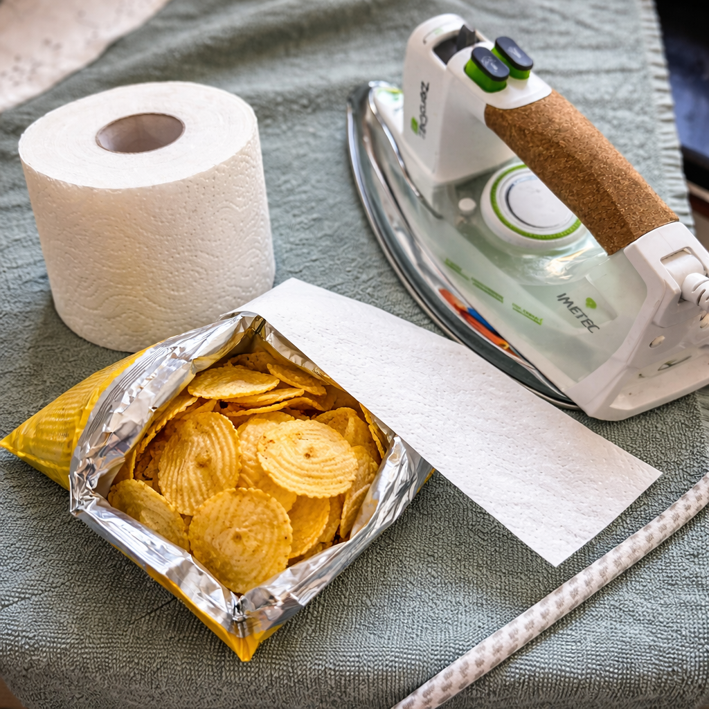 Wussten Sie, dass ein einfacher Haushaltstrick mit Toilettenpapier und einem Bügeleisen helfen kann, geöffnete Lebensmittelverpackungen wieder zu verschließen? Viele Menschen werfen Lebensmittel weg, nur weil die Verpackung nach dem Öffnen nicht mehr richtig verschlossen werden kann.