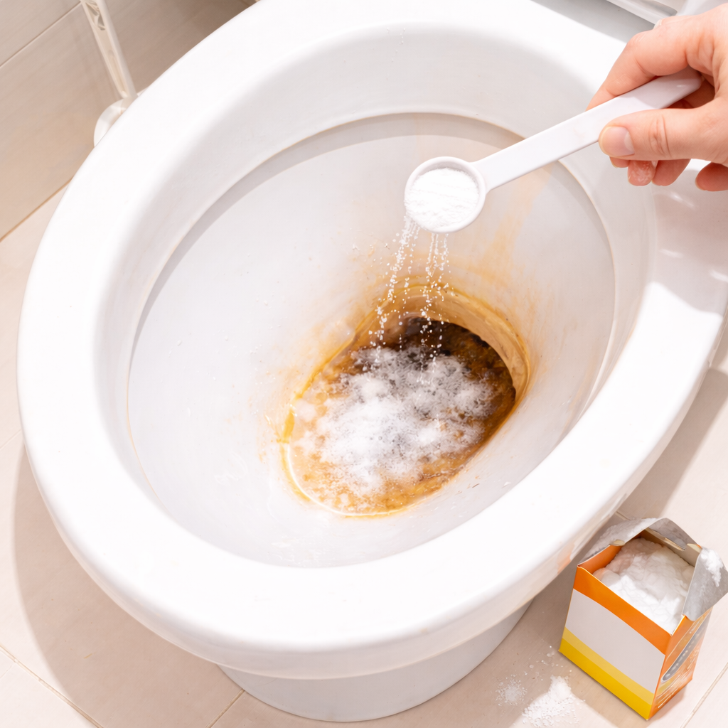 Geben Sie 2 Esslöffel Natron in die Toilette